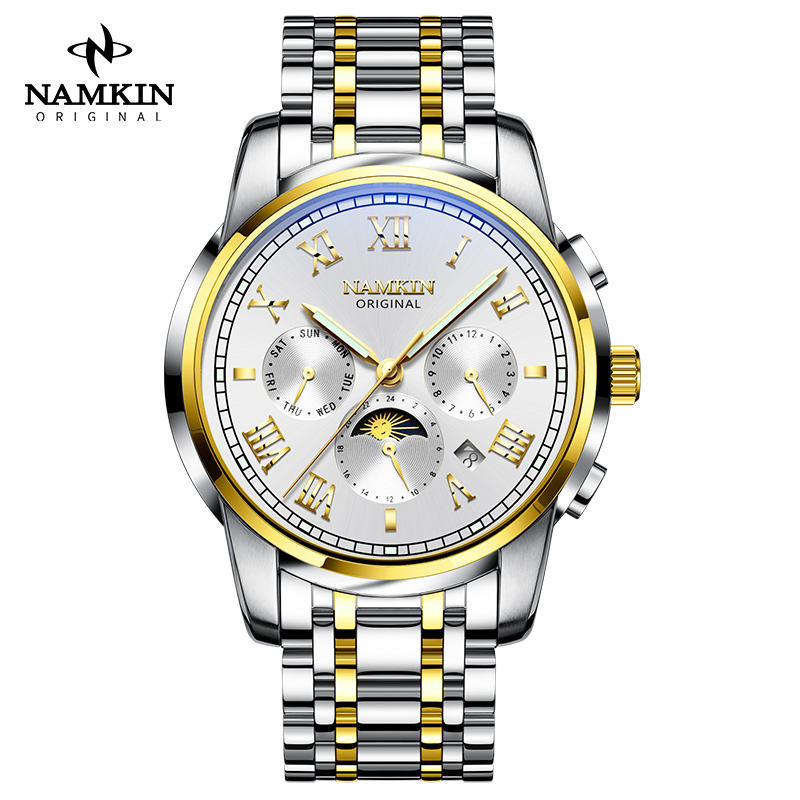 Montre mécanique automatique pour homme personnalisée avec cadran soleil, chiffres romains, multifonction, résistante à l'eau par Miyota
