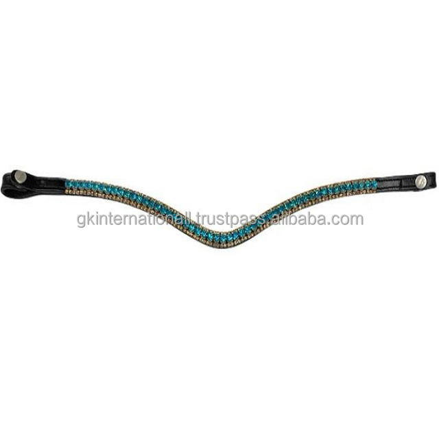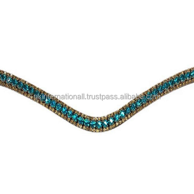 Personnalisé multicolore Artemis équin bleu or cristaux chaîne diamante forme de vague cuir cheval front bande avec fermeture à pression