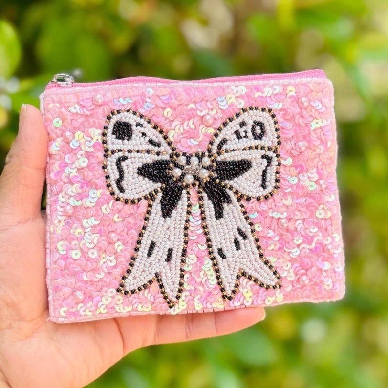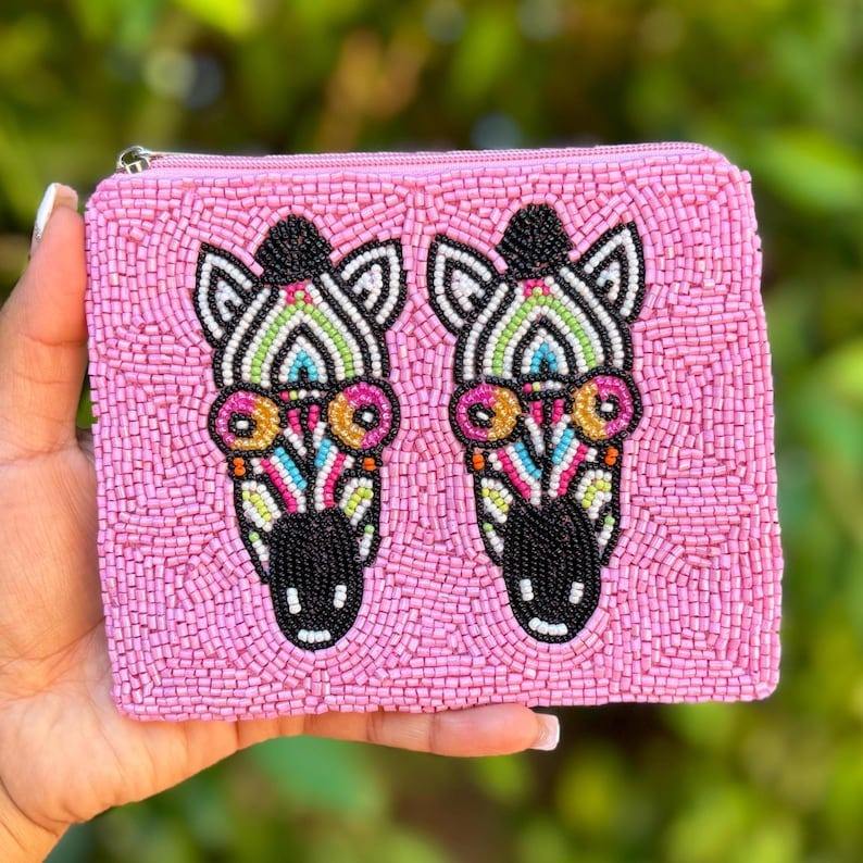 Porte-monnaie personnalisé en perles pour filles, fait main, style clé, en toile avec fermeture éclair, petit format, motif varié