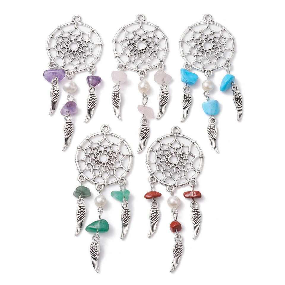 Porte-clés personnalisé en cristal naturel attrape-rêves avec perles et pompon DIY