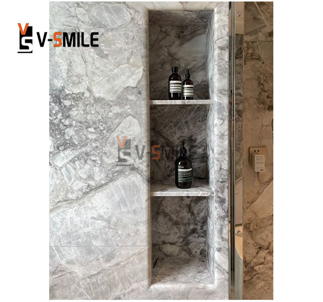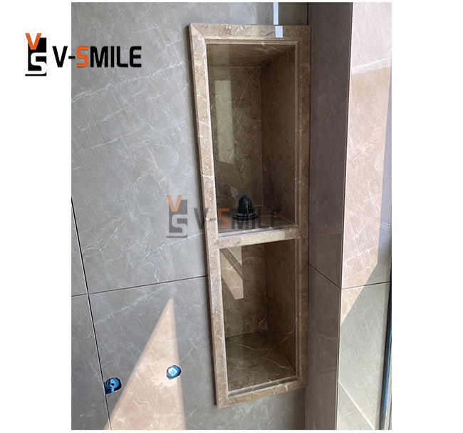 Niche de douche en marbre gris naturel personnalisé Étagères de salle de bain Niche de douche en pierre Design