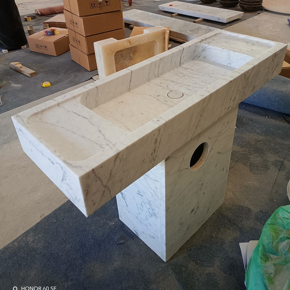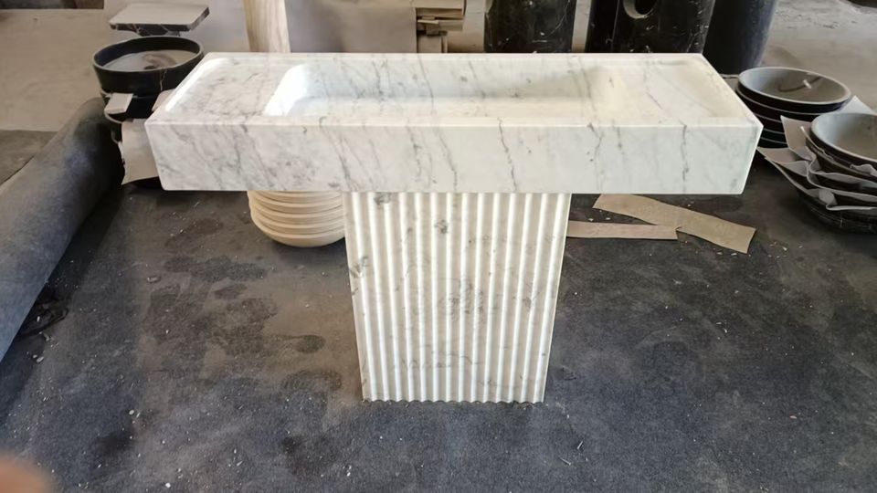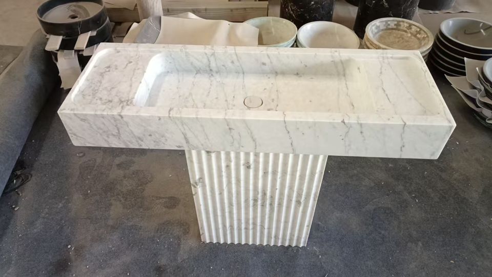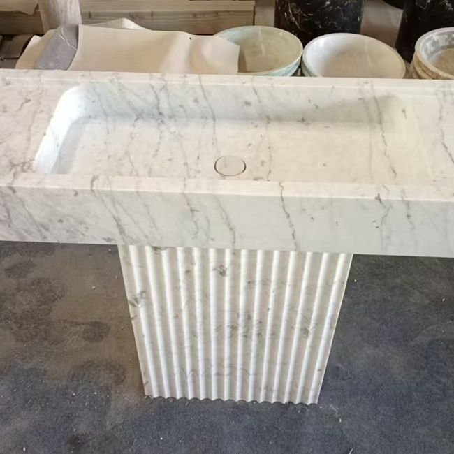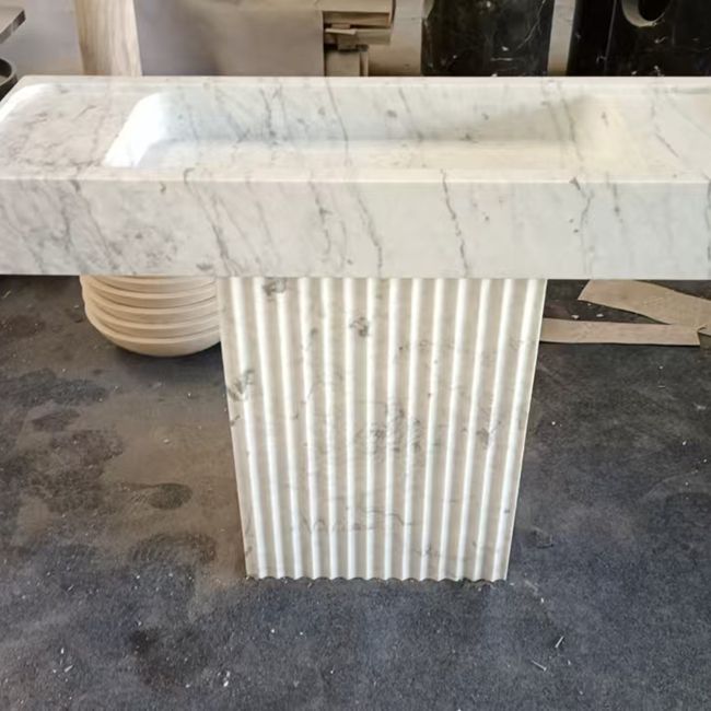 Vanités en pierre naturelle personnalisées Base cannelée Carrara blanc Autonome marbre Lavabo Salle de bain Lavabo Vanité