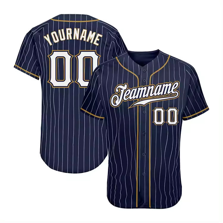 Ensemble d'uniformes de baseball unisexe personnalisés à rayures bleu marine brodées, respirant, séchage rapide, antibactérien, grande taille, 100% coton