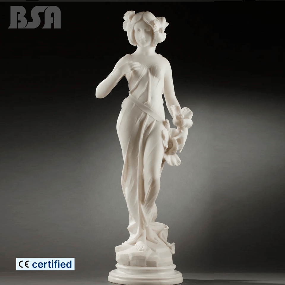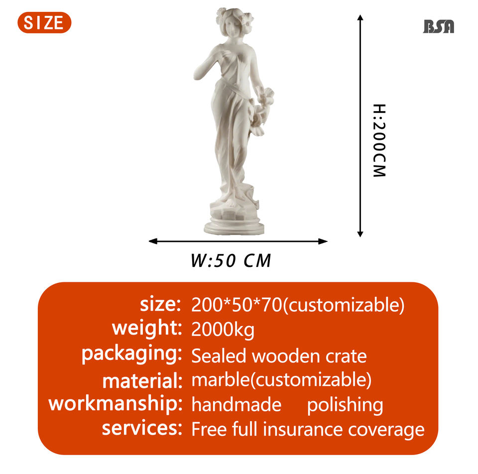 Statue en marbre personnalisée de style néoclassique d'une dame avec des fleurs sur la tête, sculpture de jardin en pierre pour la décoration de villa