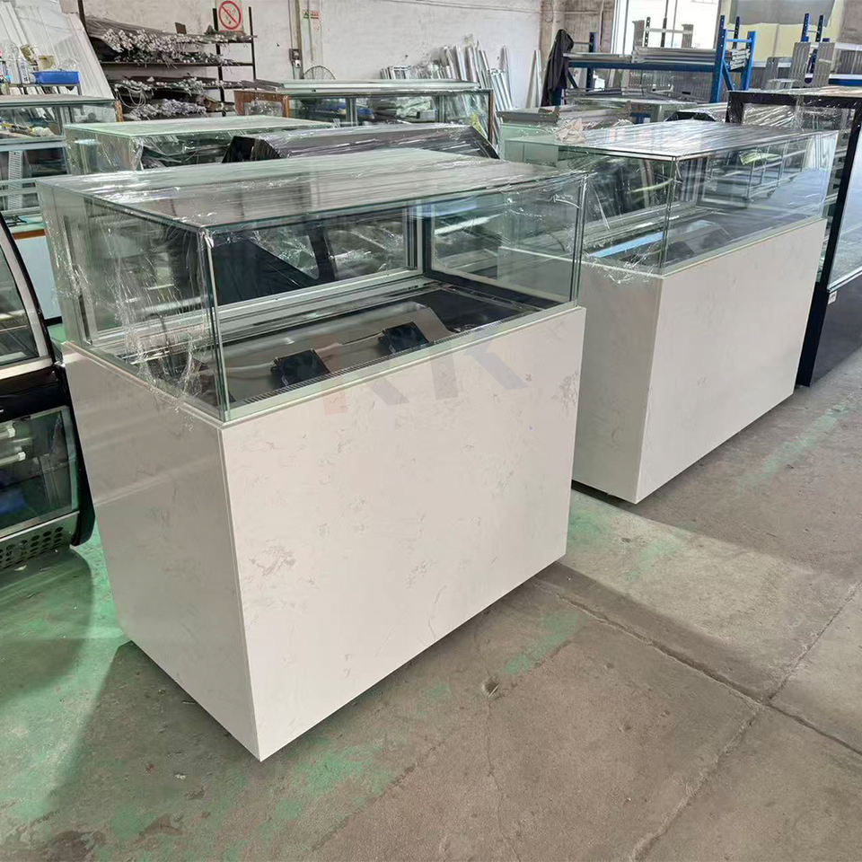 Réfrigérateur à gâteaux panoramique en verre sur mesure, nouveau design, vitrine réfrigérée pour pâtisserie, présentoir à gâteaux, réfrigérateur sans buée, base en marbre