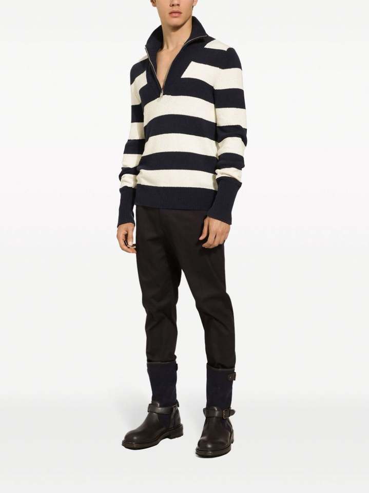 Nouveau pull personnalisé pour hommes, pull rayé noir et blanc d'automne et d'hiver, pull tricoté à demi-fermeture éclair