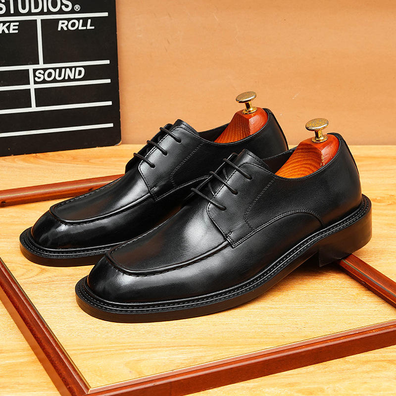 Chaussures habillées formelles pour hommes en cuir véritable, nouveau style personnalisé, avec semelles épaisses et bouts ronds, pour mariage