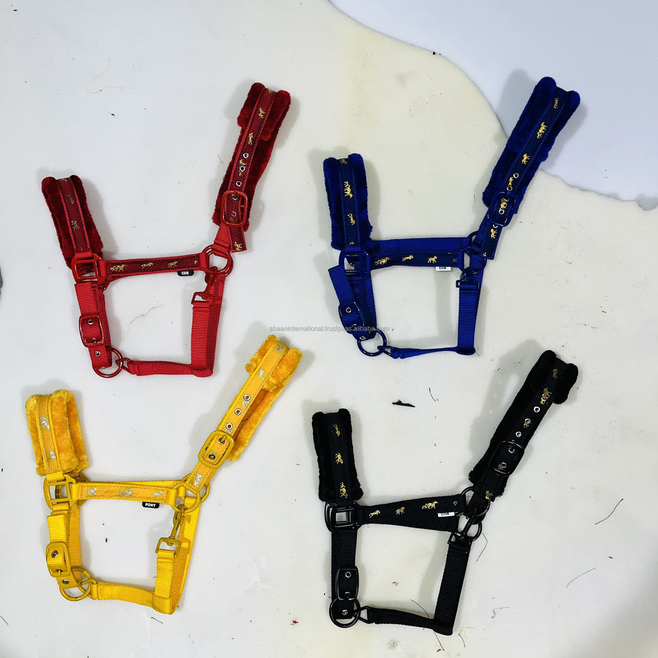 Licol de cheval en nylon personnalisé avec tête de licol en cuir, style selle anglaise, provenant d'un fournisseur indien, disponible en différentes couleurs et tailles