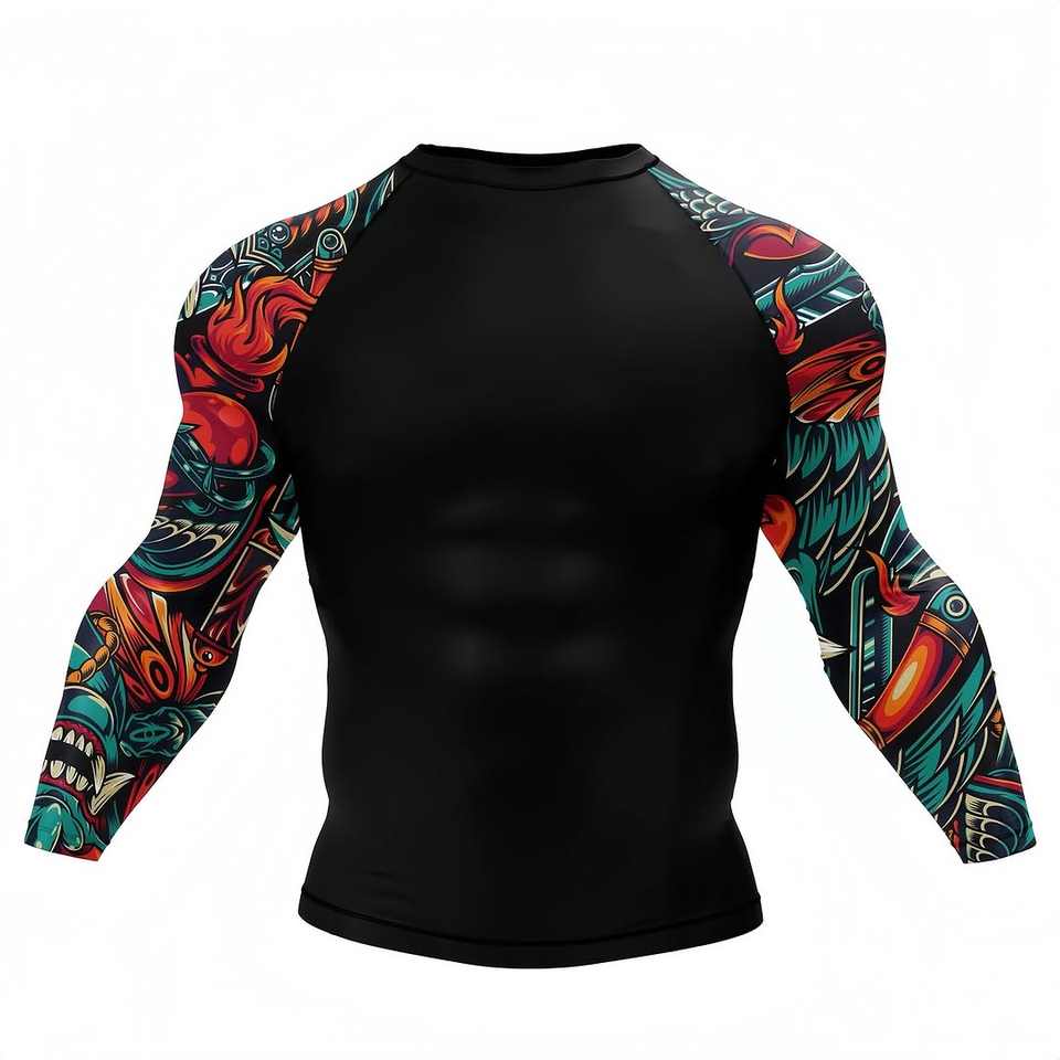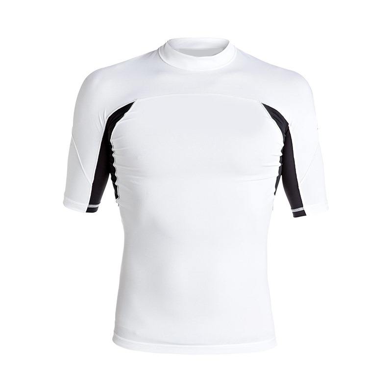 T-shirt Rash Guard Homme Personnalisé Col Rond Manches Courtes en Tissu Spandex/Nylon de Haute Qualité Écologique Anti-UV Séchage Rapide