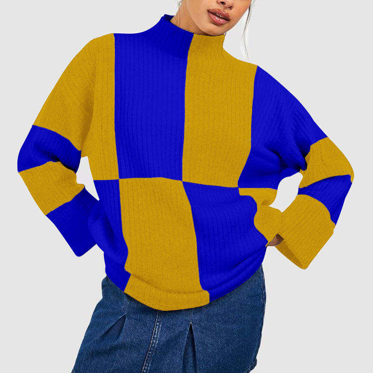 Pull pour femme personnalisé ODM/OEM, dernier design patchwork, tricot pour femmes, pull en jacquard intarsia ample
