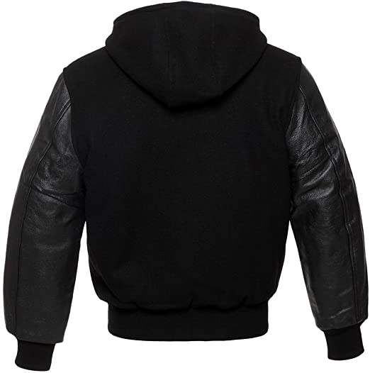 Veste universitaire Letterman personnalisée OEM Vente en gros Hommes en cuir véritable Col montant écologique Manches longues à bas prix