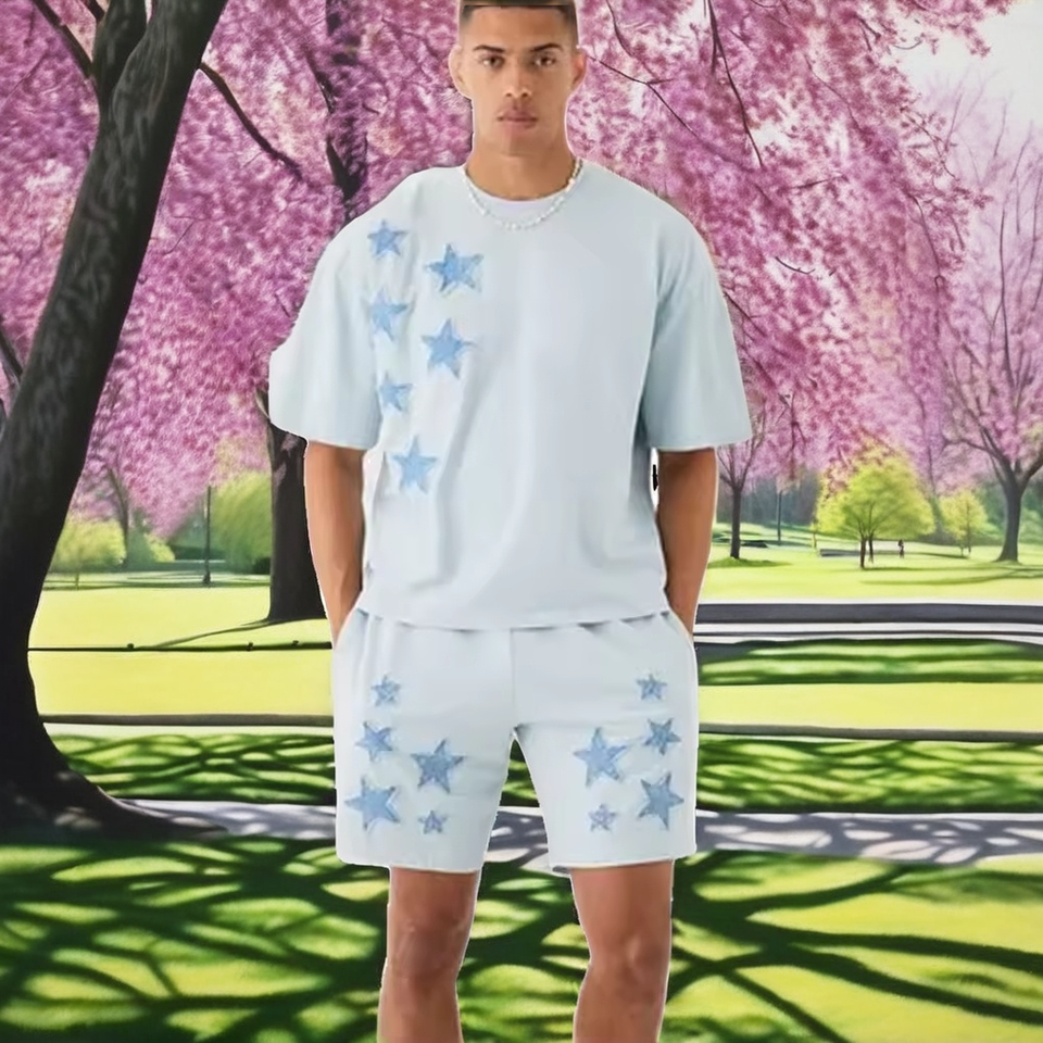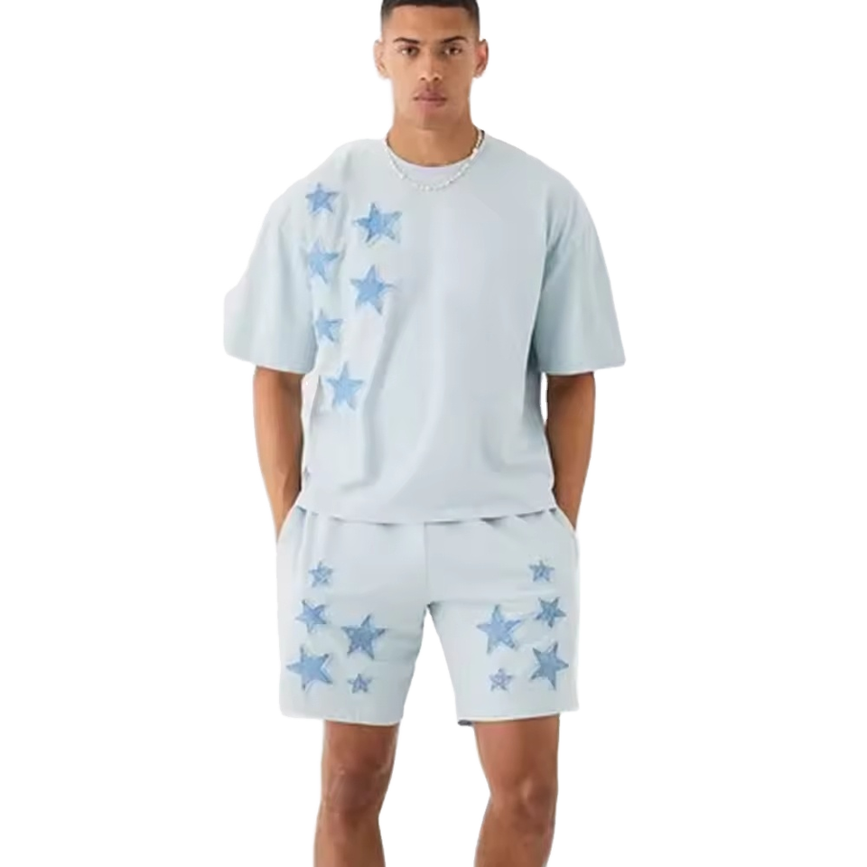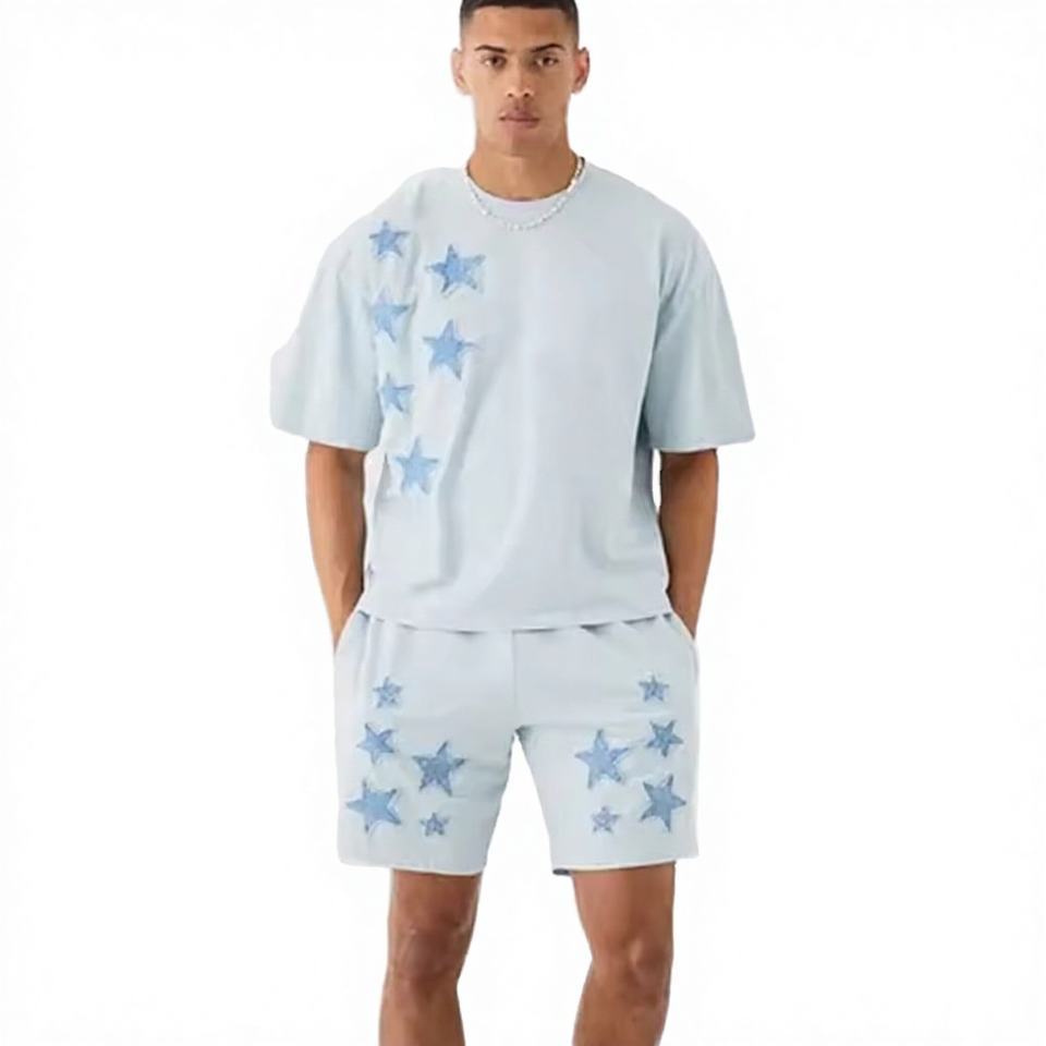 T-shirt d'été décontracté 2 pièces pour homme, personnalisé OEM, imprimé délavé à l'acide, respirant, léger, grande taille, motif uni, style streetwear