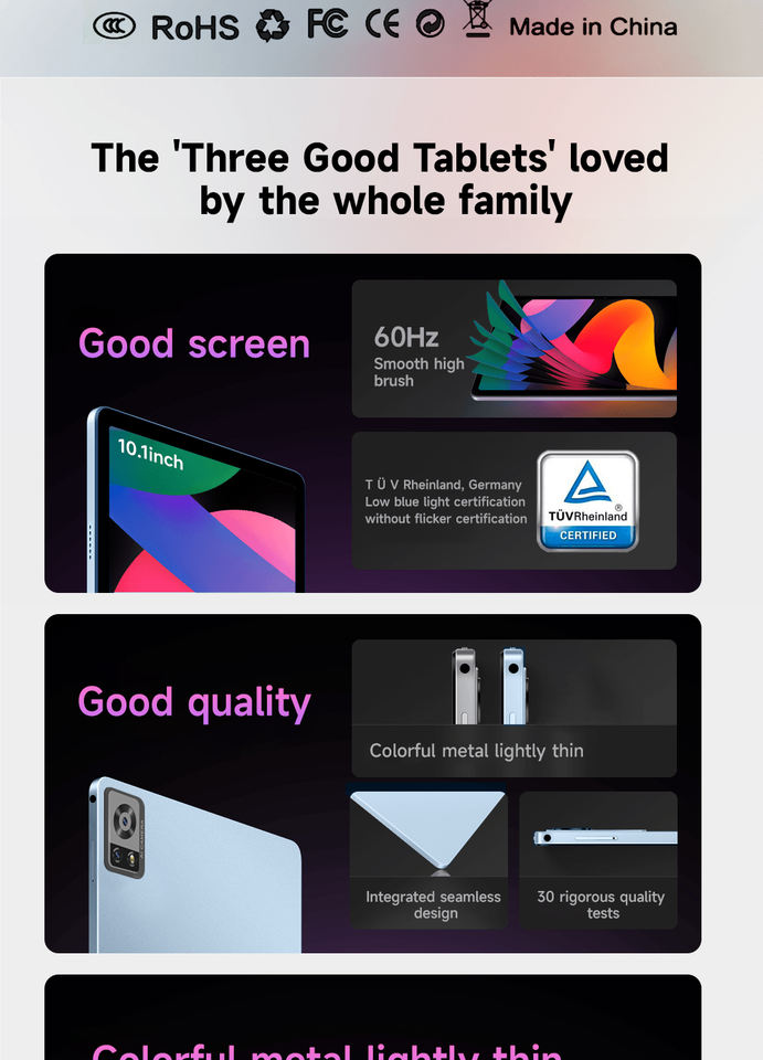 Tablette PC 10,1 pouces personnalisée OEM/ODM, 16 Go 1 To, 4G Cellulaire, Écran 2K, Octa Core, Vente Directe Usine, Tablettes Certifiées
