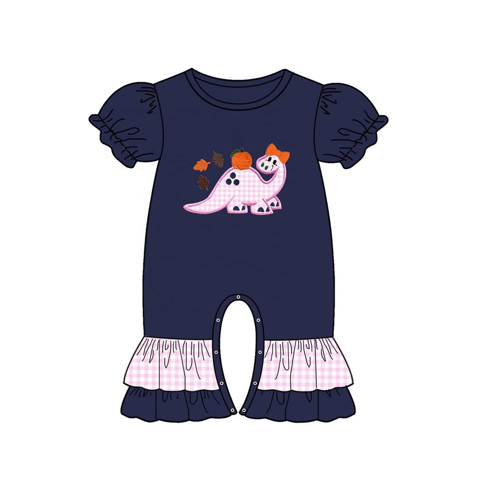 Vêtements pour enfants avec volants de service OEM personnalisé, ensemble de pantalons à clochettes, ensemble avec appliques dinosaures pour filles