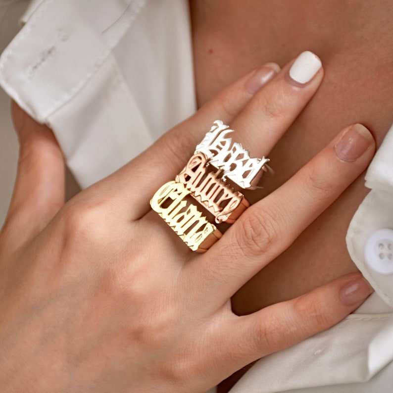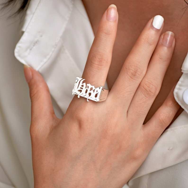 Keyword:Customized Old English Gothic Letter Ring Personalized Jewelry