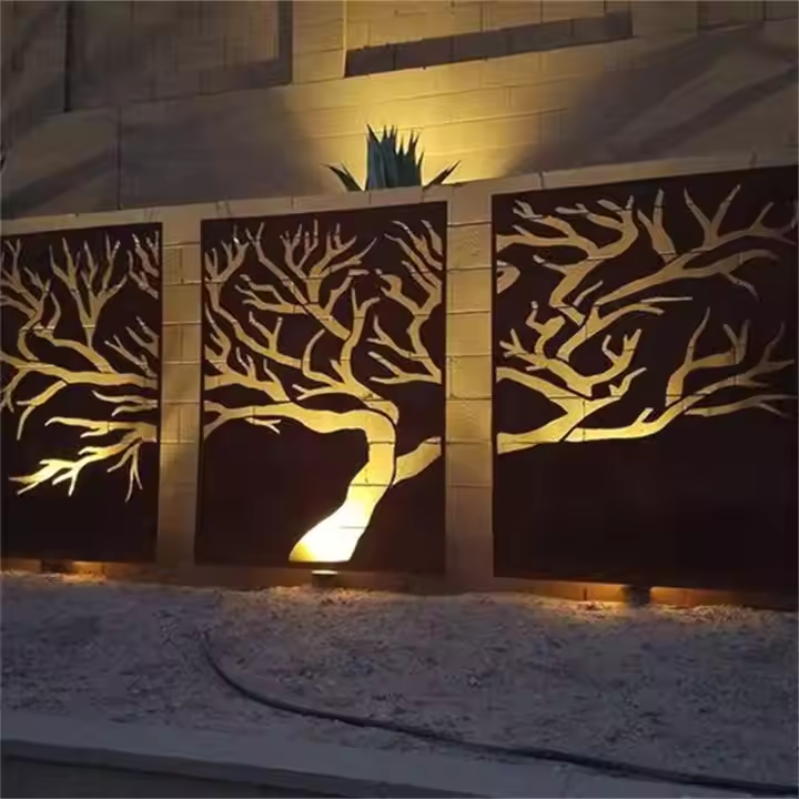 Écran décoratif de jardin en acier corten rouillé, personnalisé, style Art déco, résistant aux intempéries