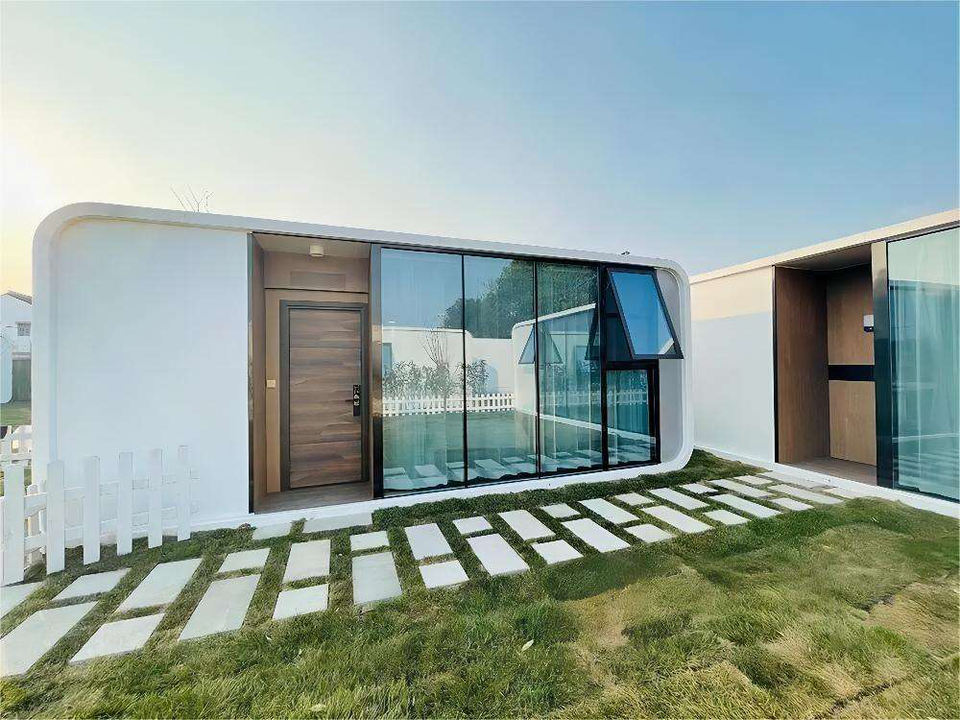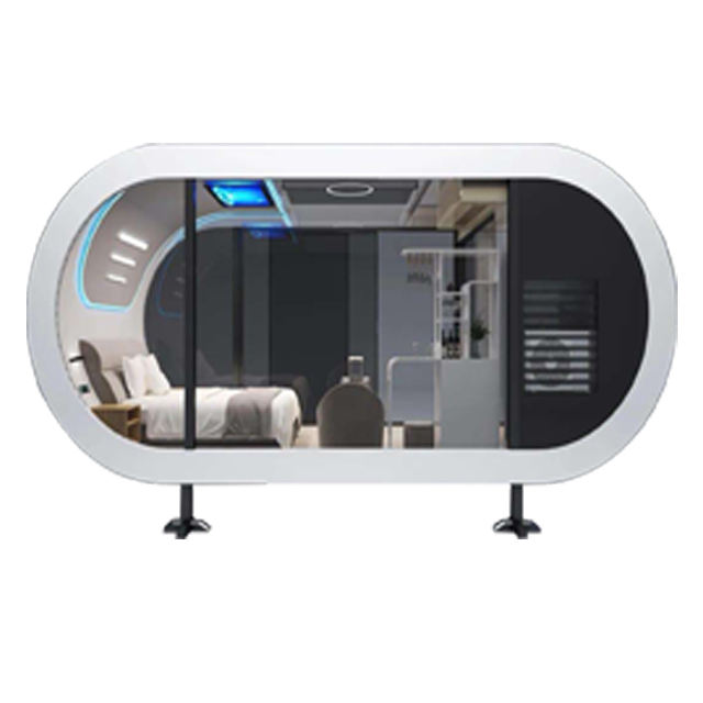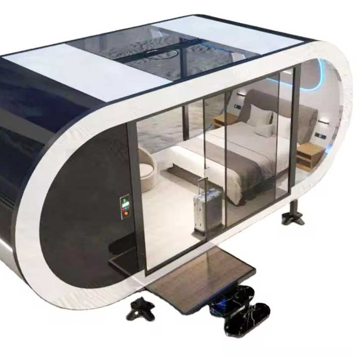 Conteneur hôtelier mobile en acier personnalisé pour camping extérieur, type capsule Apple, au style moderne, avec vue ciel étoilé et Netflix, pour B&B
