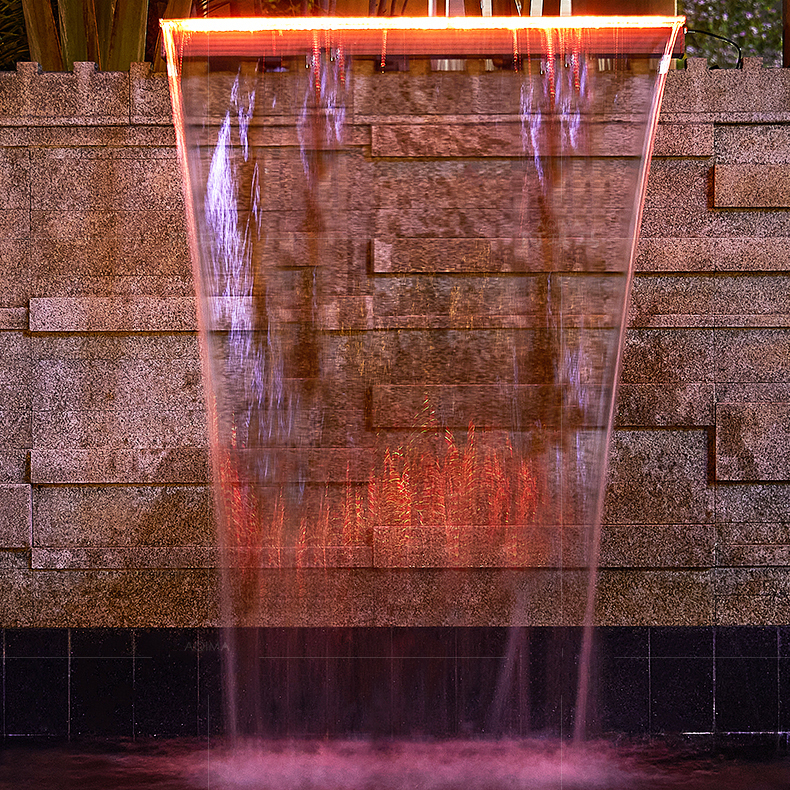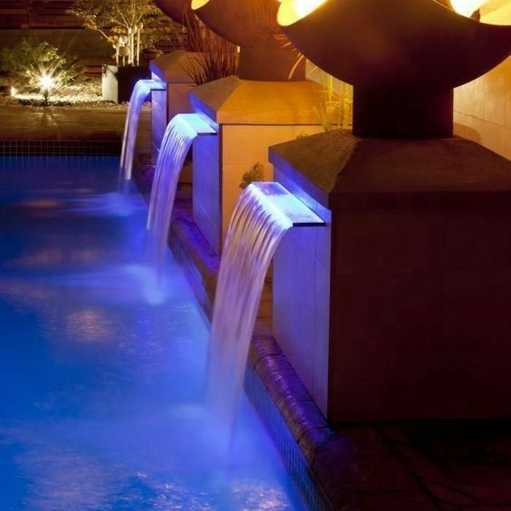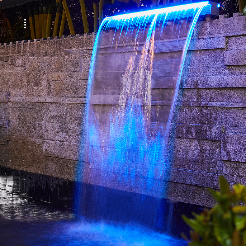 Fontaine d'eau à cascade avec éclairage LED changeant de couleur, personnalisée pour jardin extérieur, piscine
