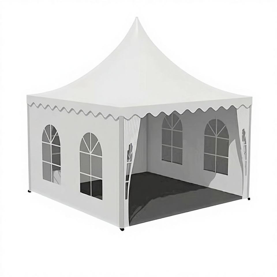 Tonnelle métallique personnalisée pour extérieur, style moderne et épuré, grande taille, pour expositions et événements commerciaux, avec poteaux épaissis et forme de spire