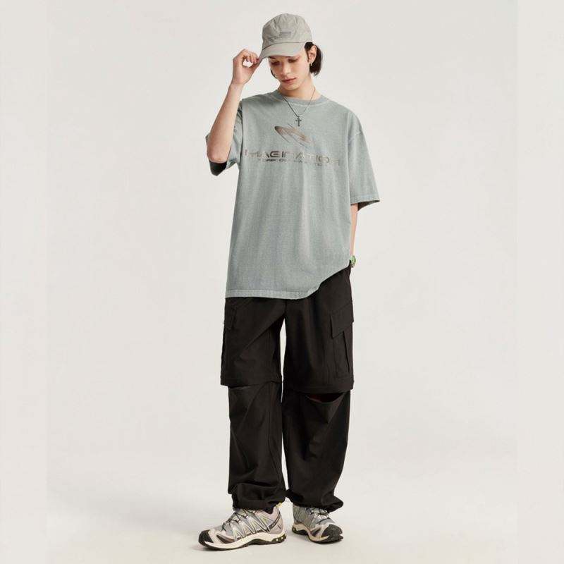 Customized Oversized Anime T-Shirt for Men 300 Grams 100% Cotton Tick Collar Ripped Neck Overdyed 100% Cotton Fabric