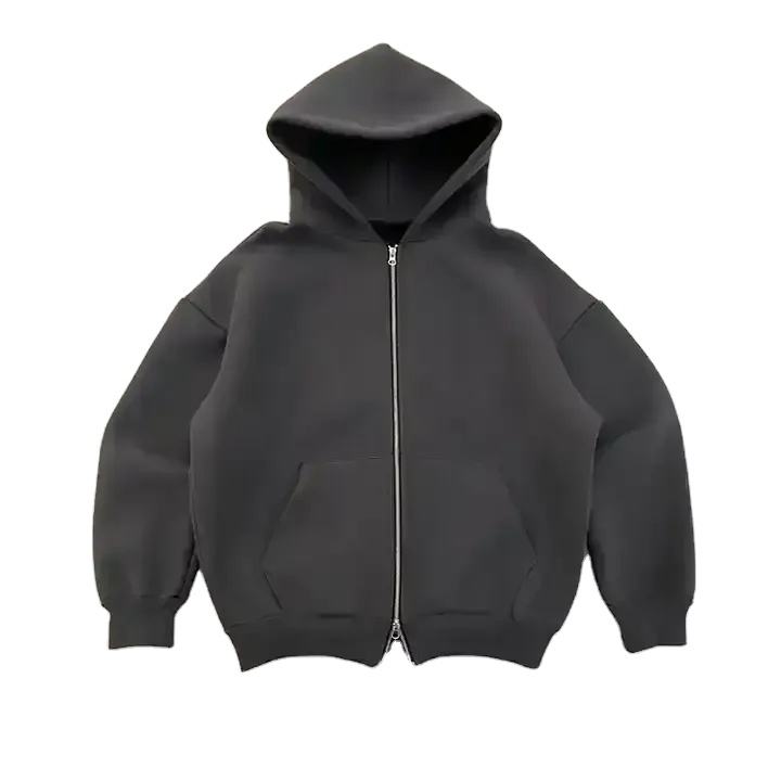 Sweat-shirts à capuche surdimensionnés pour hommes personnalisés, lourds, 100% coton, polaire épais, streetwear, sweat-shirt à fermeture éclair uni pour l'hiver