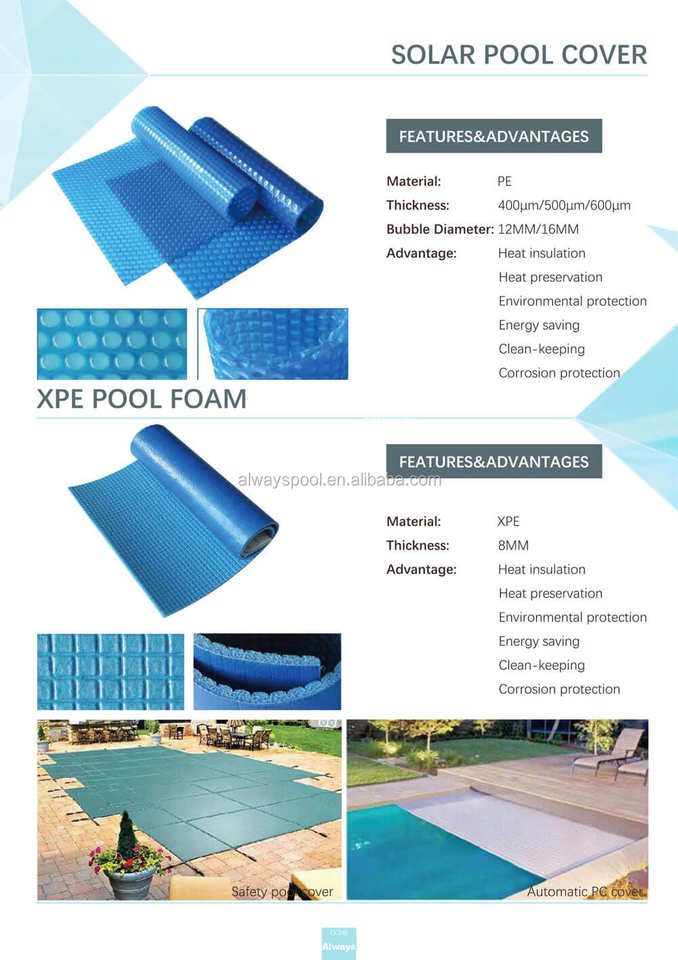 Couverture de piscine solaire en mousse PE personnalisée, couvercle de piscine à bulles