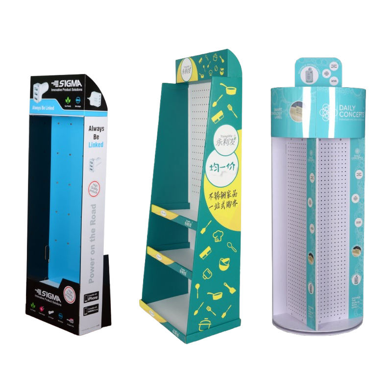 Présentoir suspendu à crochet en carton pour plancher de panneau perforé POP personnalisé pour accessoires de téléphone portable