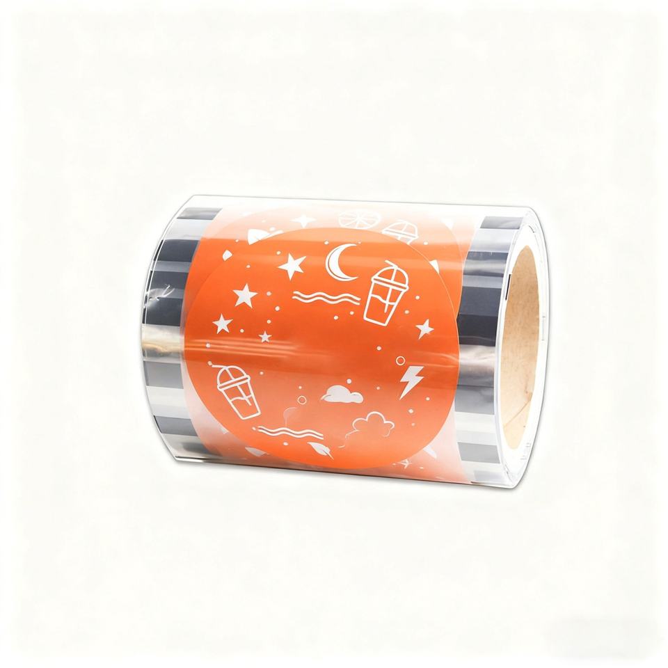 Film d'étanchéité alimentaire PP personnalisé pour emballage de gobelets, film laminé en rouleau imprimé, film composite flexible en plastique et papier pour thé aux perles Boba
