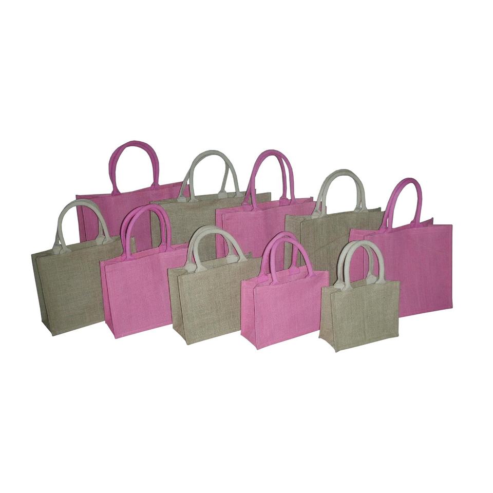 Sac fourre-tout en jute laminé PP personnalisé disponible en différentes tailles avec poignée en corde rembourrée