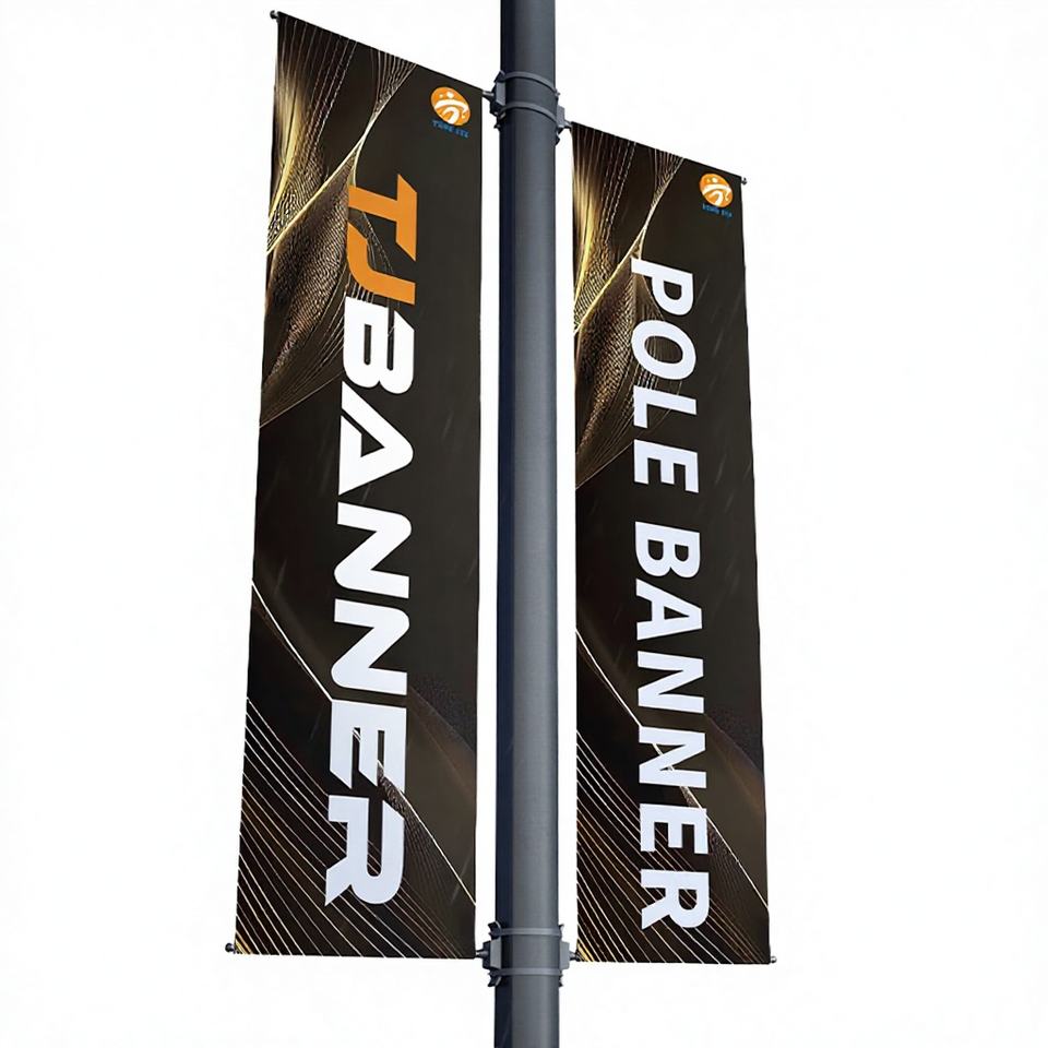 Bannière publicitaire verticale extérieure en PVC vinyle personnalisée pour poteau d'éclairage avec mât en aluminium pour la promotion