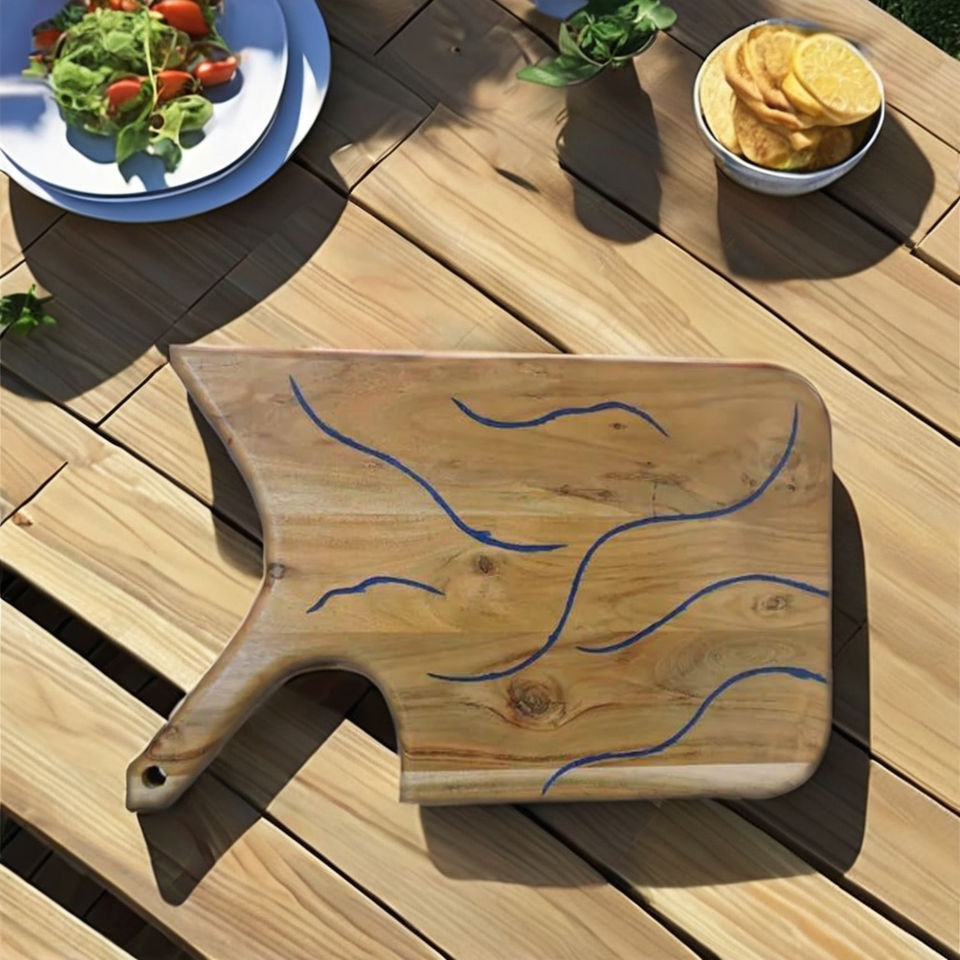 Blocs à découper en bois d'acacia au design durable en résine d'emballage personnalisé Planche à fromage en bois naturel de grande taille Planche en bois de manguier