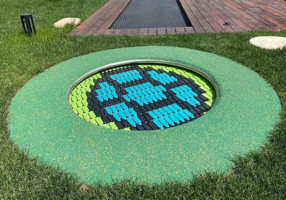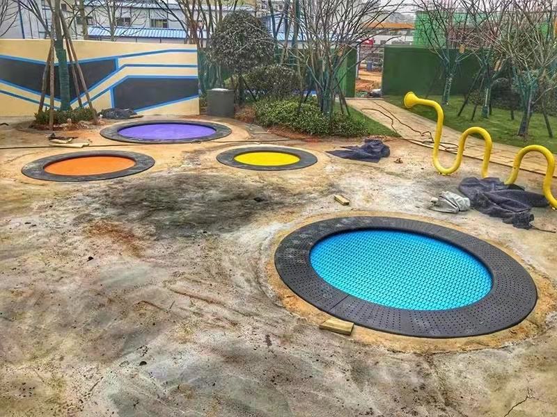 Trampoline enterré au sol avec logo OEM, design coloré personnalisé pour parc extérieur