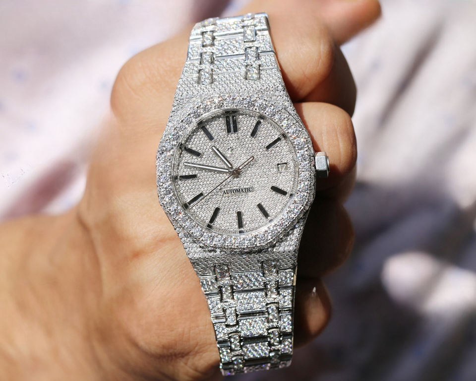 Testeur de diamant de passe personnalisé Hip Hop automatique mécanique buste vers le bas entièrement blanc VVS Moissanite fabricant de montre-bracelet de luxe