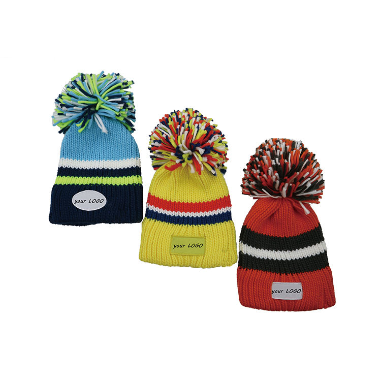Bonnet d'hiver en laine islandaise tricotée au crochet personnalisé avec pompon, bonnet à pompon, chapeaux à gros pompon avec logo brodé personnalisé