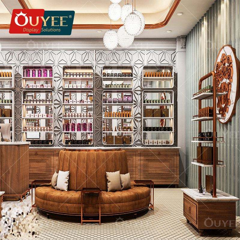 Vitrine de parfums personnalisée Vitrine de magasin de cosmétiques design d'intérieur