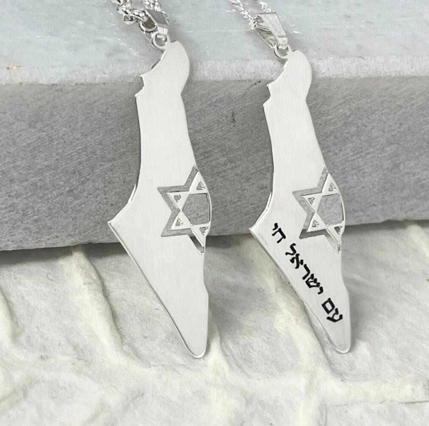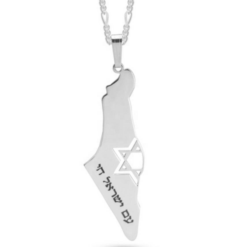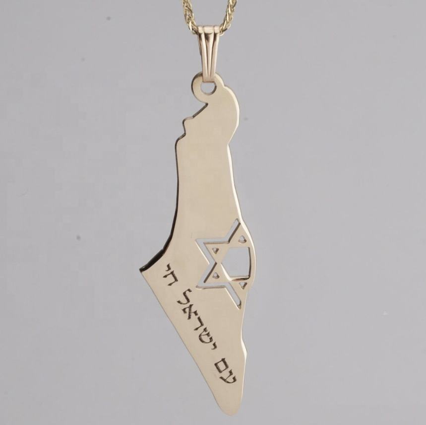 Collier avec pendentif personnalisé en acier inoxydable gravé en lettres hébraïques évider Magen David Israël carte d'Israël
