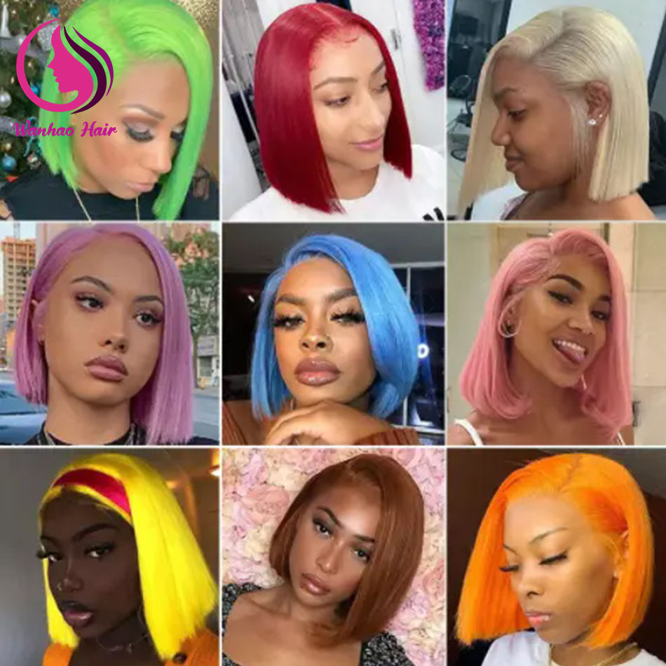 Perruque Péruvienne 613 Personnalisée Cheveux Humains Blonde Bob Dentelle Fermeture Perruque Peut Être Teinte Au Rouge Orange Rose Violet Bob Perruques