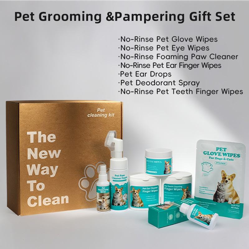 Kit de soins de nettoyage corporel personnalisé pour animaux de compagnie pour chiens, chats, petits animaux, nettoyage des dents, des oreilles, des yeux, lingettes pour les doigts, hydratant, nourrissant