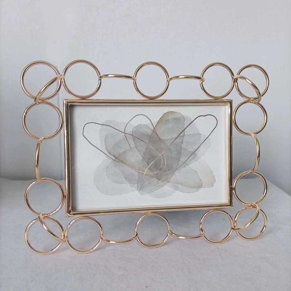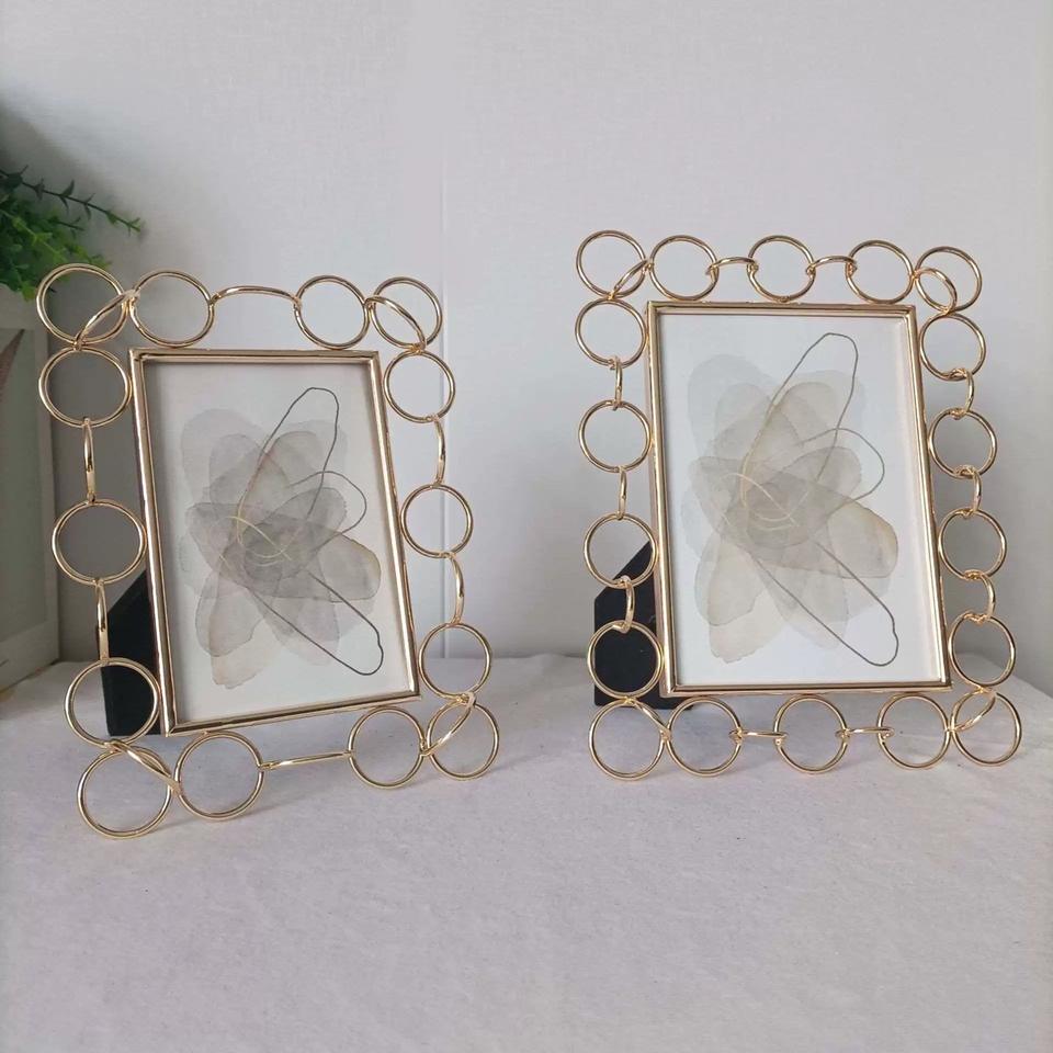 Customized Photo Frame Light Luxury Golden Circle Photo Frame High-grade European Style Wedding Metal Photo Frame