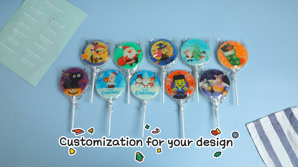 Photo personnalisée sucette bonbons durs vente en gros Halloween Festivals de Noël confiserie populaire sacs de sucre en fruits sucrés
