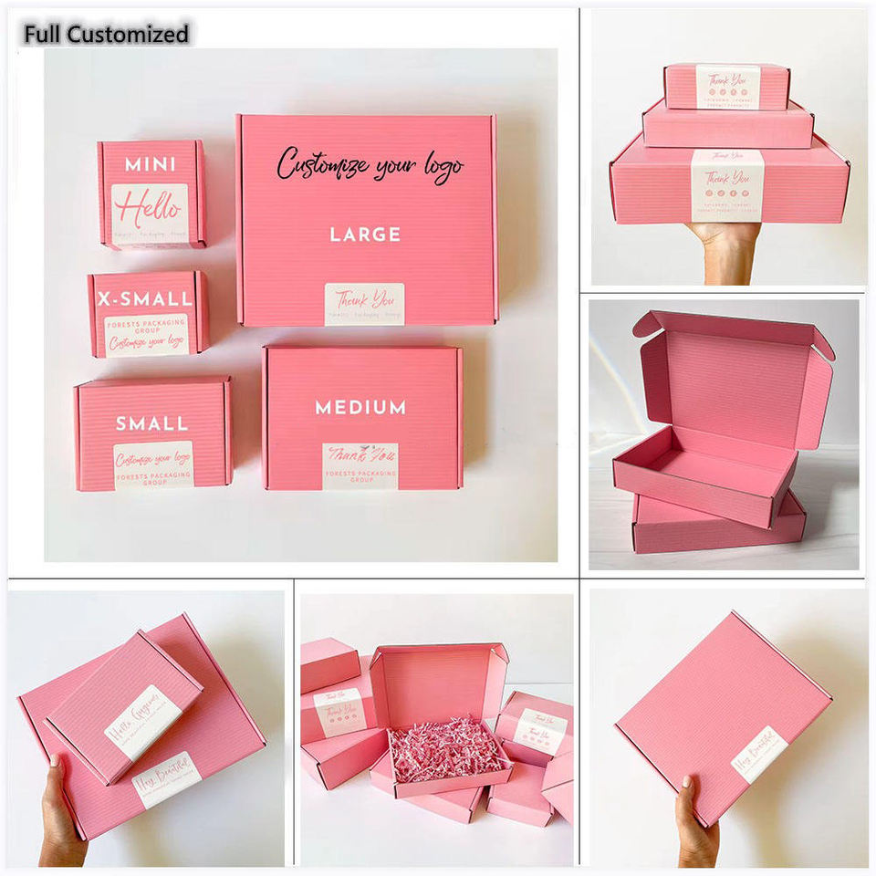 Boîte postale ondulée rose personnalisée Impression de logo pour la boutique de vêtements Boîte cadeau en carton d'emballage postal cosmétique en gros
