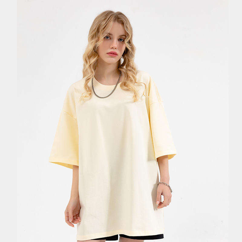 T-shirt rose surdimensionné personnalisé à épaules tombantes 100% coton T-shirts pour femmes vierges