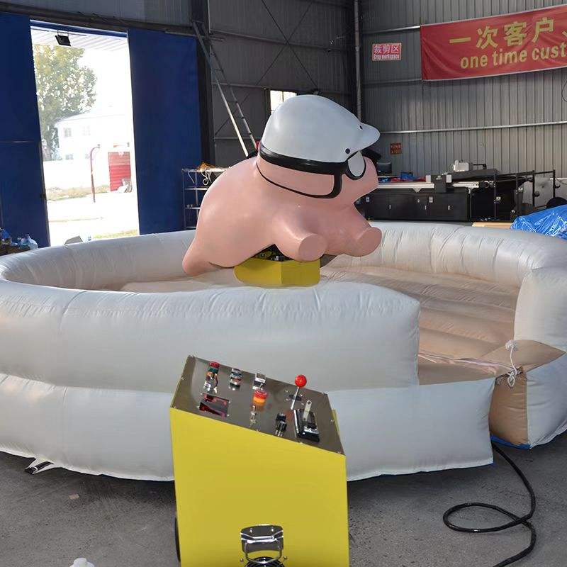 Jeux de machines à monter à dos de cochon rose personnalisés, tapis de sécurité gonflable, taureau mécanique de rodéo à louer