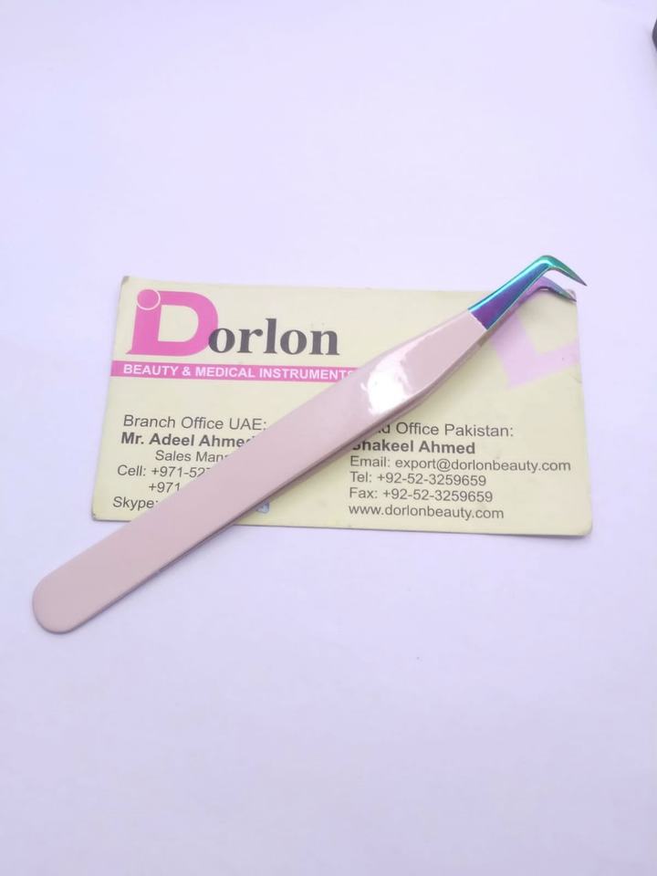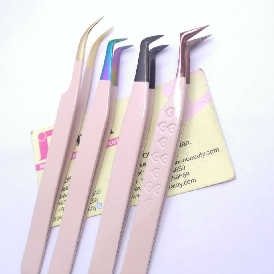 Pince à épiler à volume incurvé de couleur beige-rose personnalisée pince à épiler d'extension de cils naturelle écologique pince à épiler à sourcils plasma