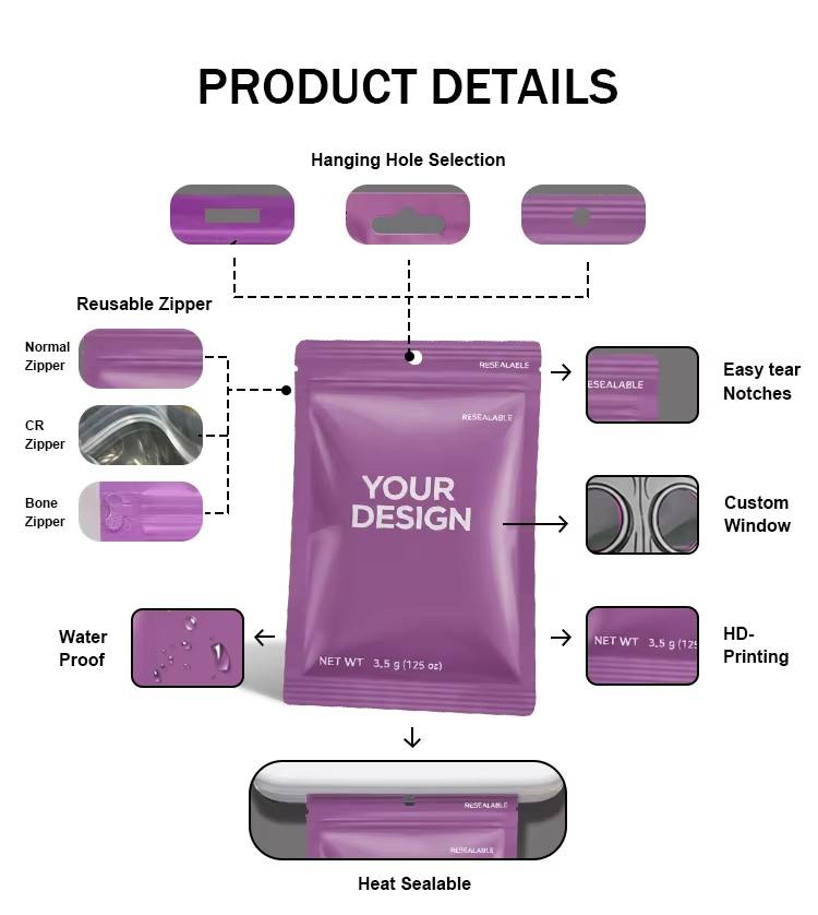 Sac d'emballage d'accessoires en plastique personnalisé à trois côtés scellés avec logo