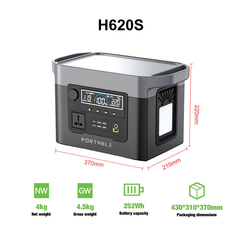 Générateur solaire d'urgence personnalisé 252Wh 600W, station d'alimentation portable hors réseau à onde sinusoïdale pure pour le camping et la maison