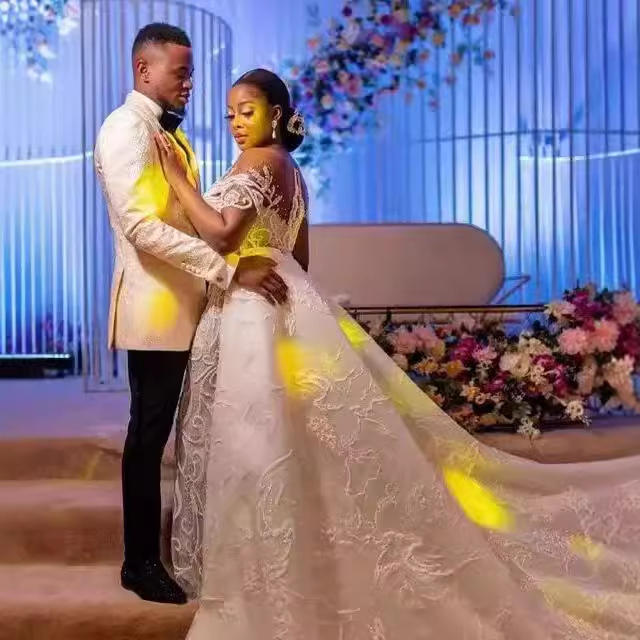 Robes de mariée sirène sur mesure grandes tailles 2025 avec traîne détachable, dentelle perlée et appliquée, style africain Aso Ebi