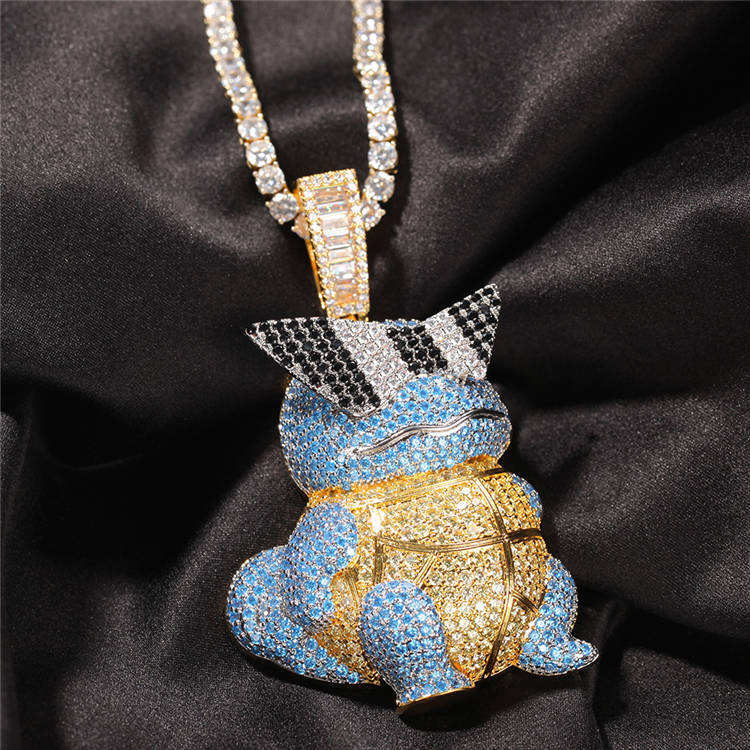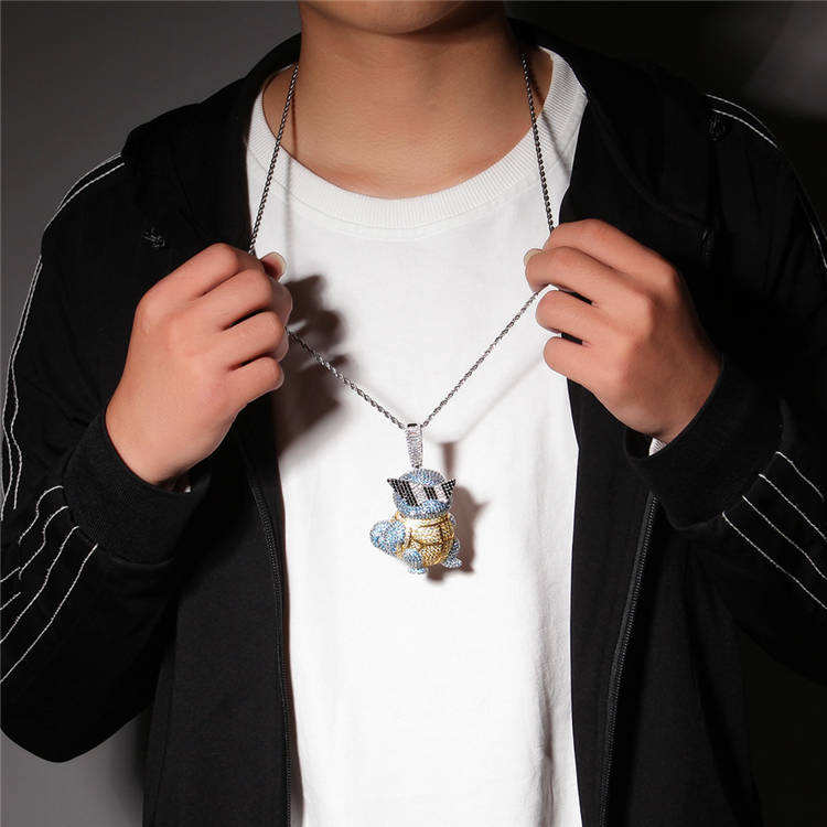 Pendentif Hip Hop personnalisé en moissanite glacée Pokémon, deux tons, plaqué or 14 carats, argent sterling pour garçons