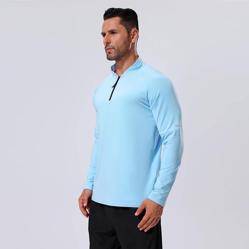 Vêtements de sport d'entraînement de compression en tissu polyester personnalisés T-shirts à manches longues semi-zippés pour hommes