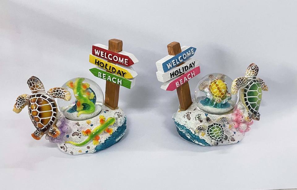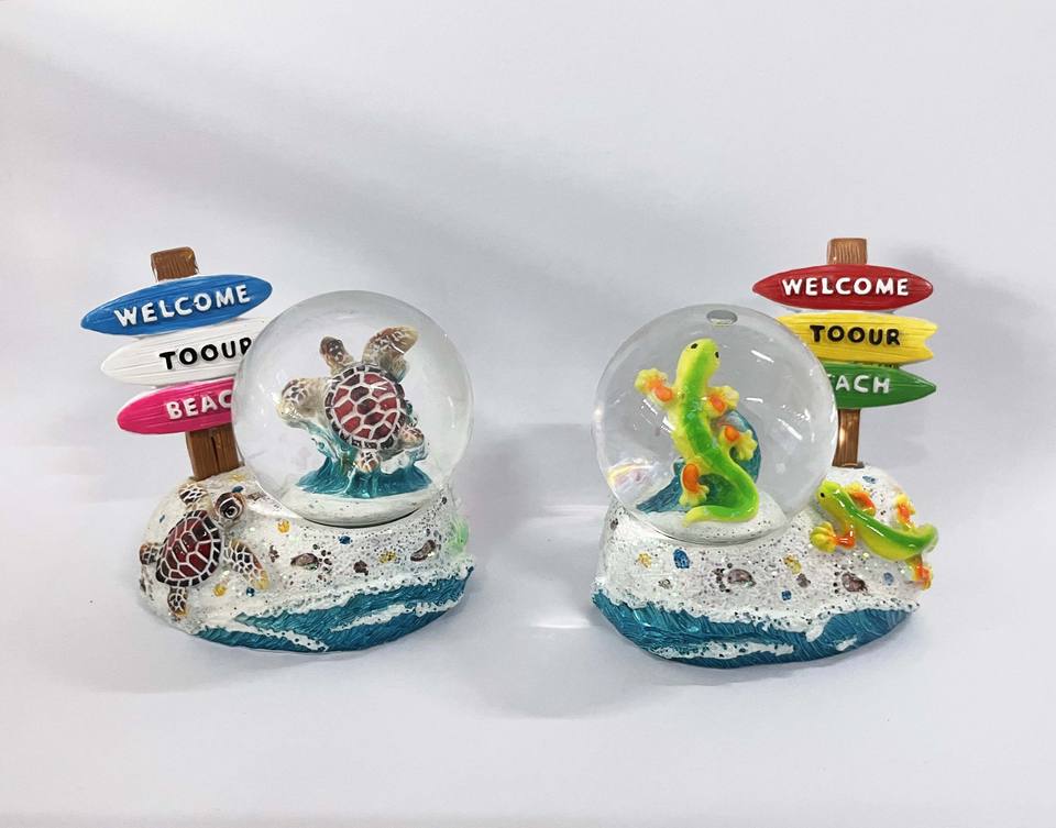 Globe à eau en polyrésine personnalisé, écologique, peint à la main, tortue, lézard, dauphin, design plage, 45 mm